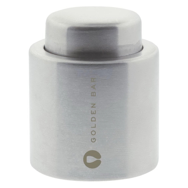 Add a touch of timeless charm to your next wine-themed promotion with this vintage-style wine stopper. Measuring 1.75" and crafted from brushed stainless steel, it features vacuum action and a silicone insert that locks in freshness with an airtight seal. Just place it in the bottle and it self-locks instantly. To reopen, a simple push of the button does the trick. Customize it with your logo using precision laser engraving or vibrant printing. A perfect fit for wine tastings, vineyard tours, or upscale event giveaways.