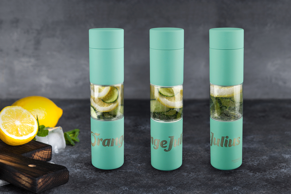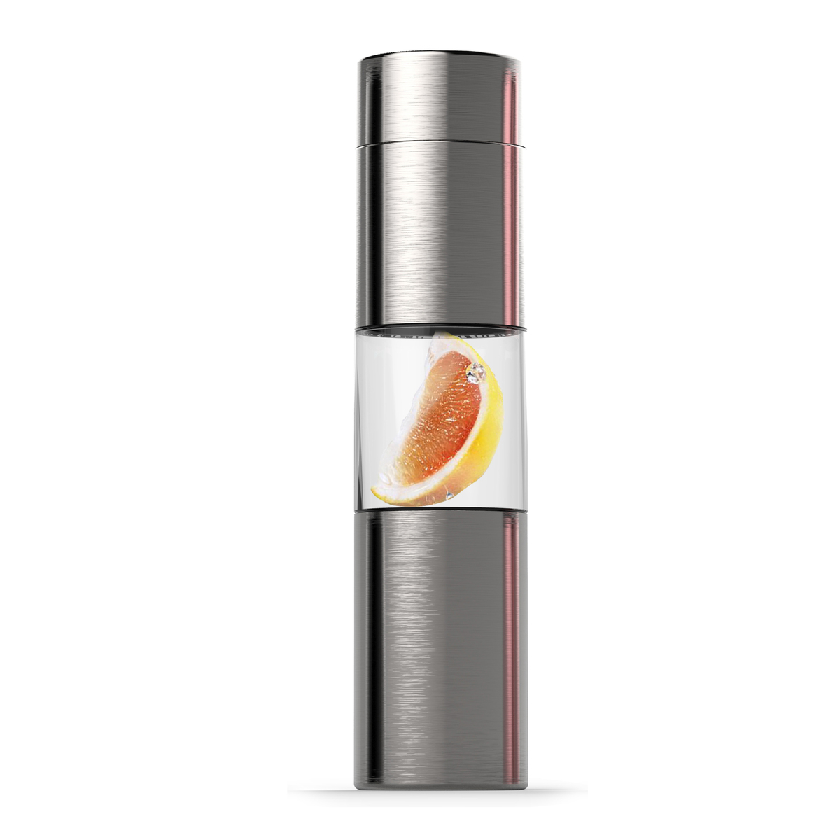 The Asobu® Flavour U See Fruit Infuser Bottle is the ideal fashion accessory for almost any occasion. The clear Tritan™ center section suspends fruit, mint, or other contents in your chilled water between 2 filters, which prevents any bulk pulp from entering the drinking section. This healthy lifestyle product can encourage everyone to drink more water!