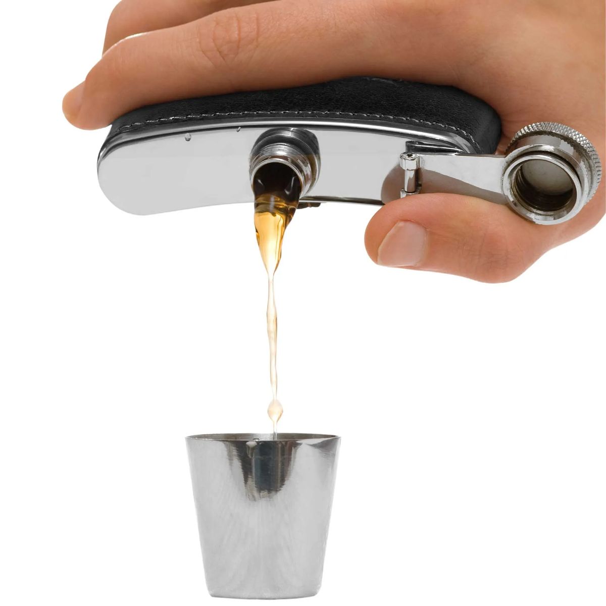 Additional Information8 oz. flask made of stainless steel with a hinged screw-on top and elegant faux leather wrap.